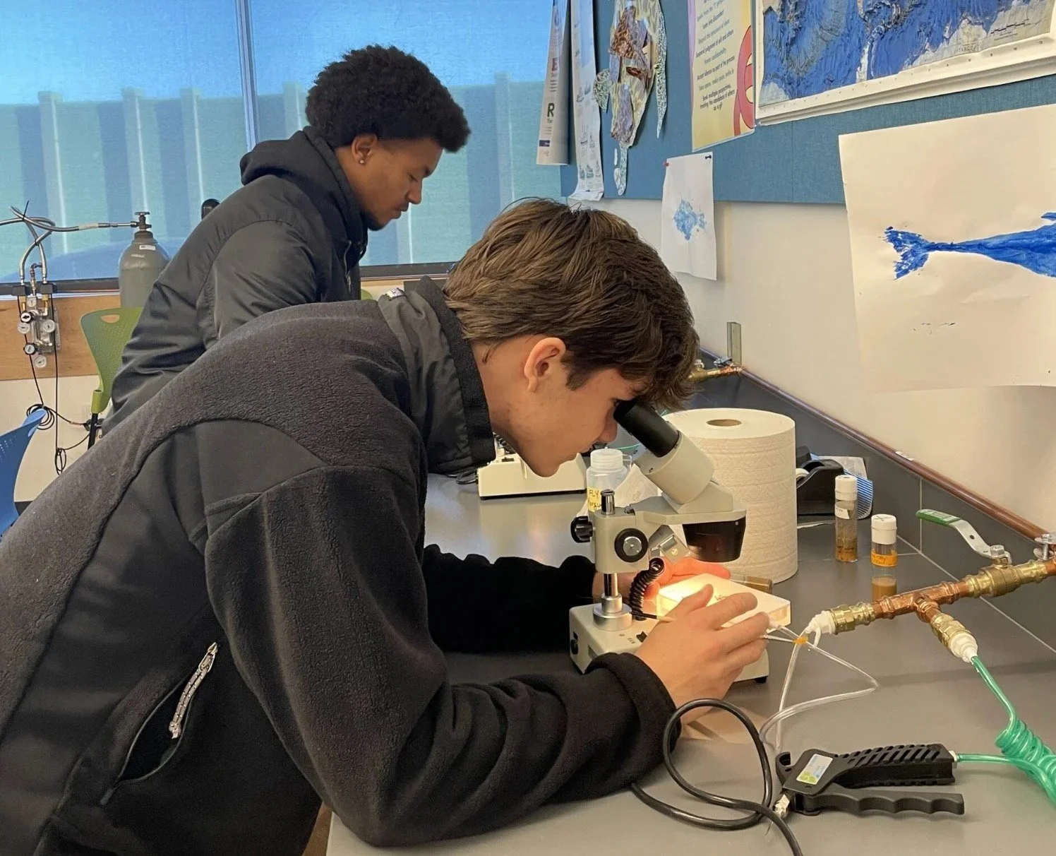 As part of the inaugural class, interested students signed up during course selection last spring. Dylan Lachance ’27 explained how the hands-on work seemed different from the guided structure of established sciences. “I really loved how this class was offering to do a research project that was from September to April,” he said. “So there was a lot of continuity, which I appreciate, especially because I want to be involved in scientific research as a career. So this is a really cool opportunity to prepare for that.”